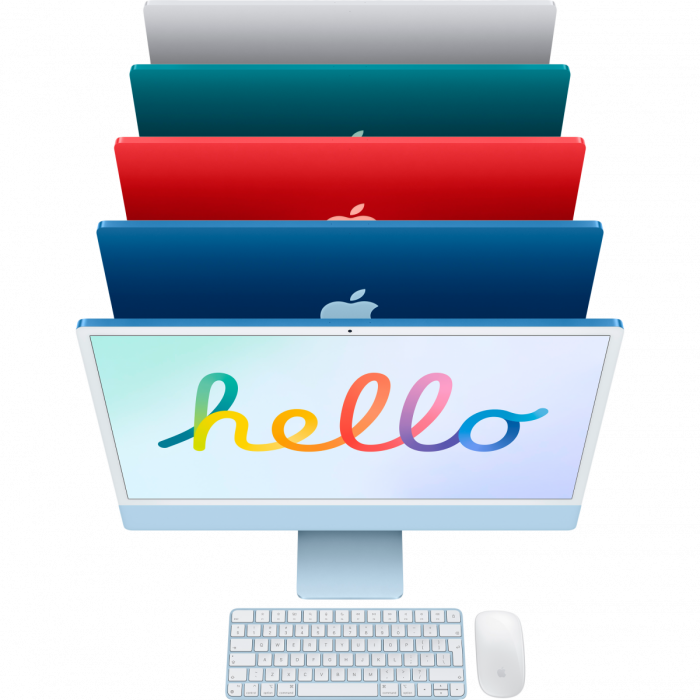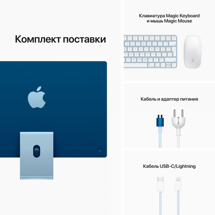 Apple iMac 24" Retina 4,5K, M1 (8C CPU, 7C GPU), 8 ГБ, 256 ГБ SSD, синий (MJV93)