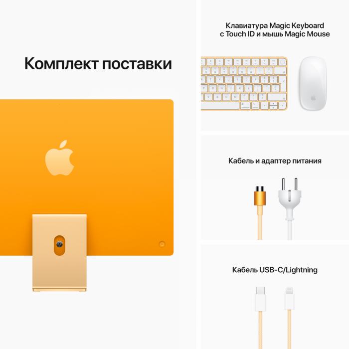Apple iMac 24" Retina 4,5K, M1 (8C CPU, 8C GPU), 8 ГБ, 256 ГБ SSD, жёлтый (Z12S)
