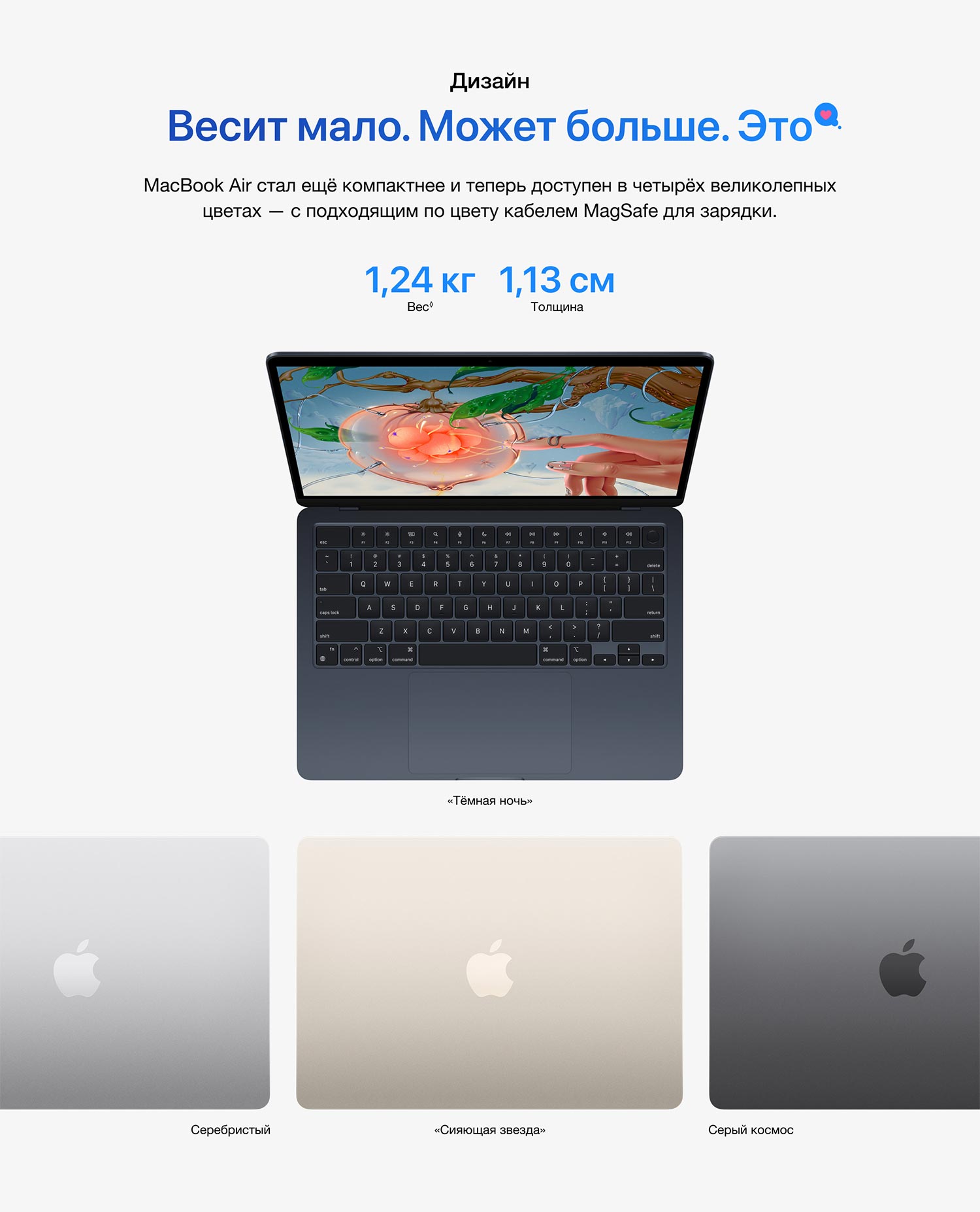 Apple MacBook Air 13 M2 (8‑core CPU, 10‑core GPU), 8 ГБ, 512 ГБ SSD, темная ночь (MLY43)