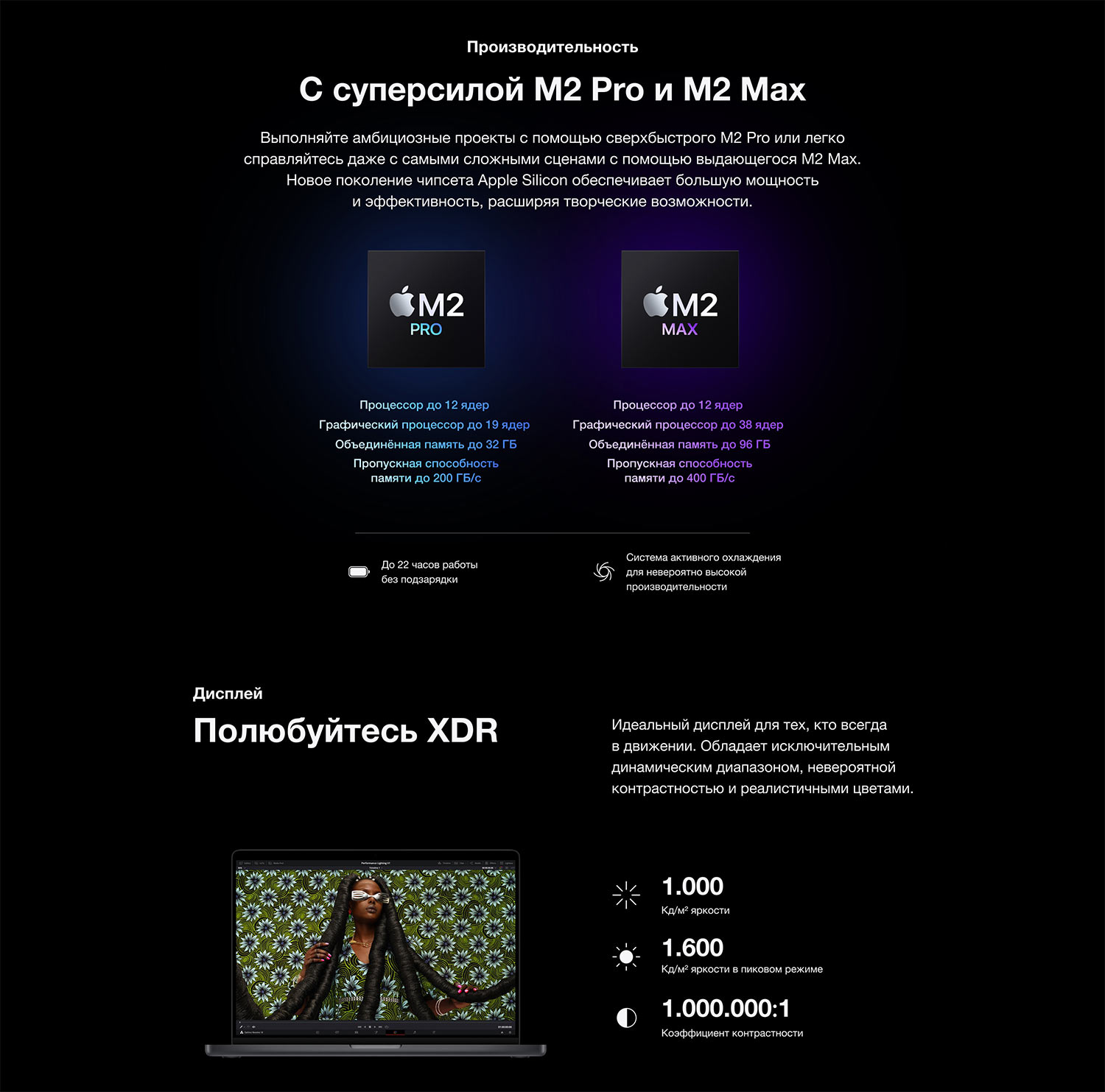 Apple MacBook Pro 16" (M2 Max 12C CPU, 38C GPU, 2023) 32 ГБ, 1 ТБ SSD серый космос (MNWA3)