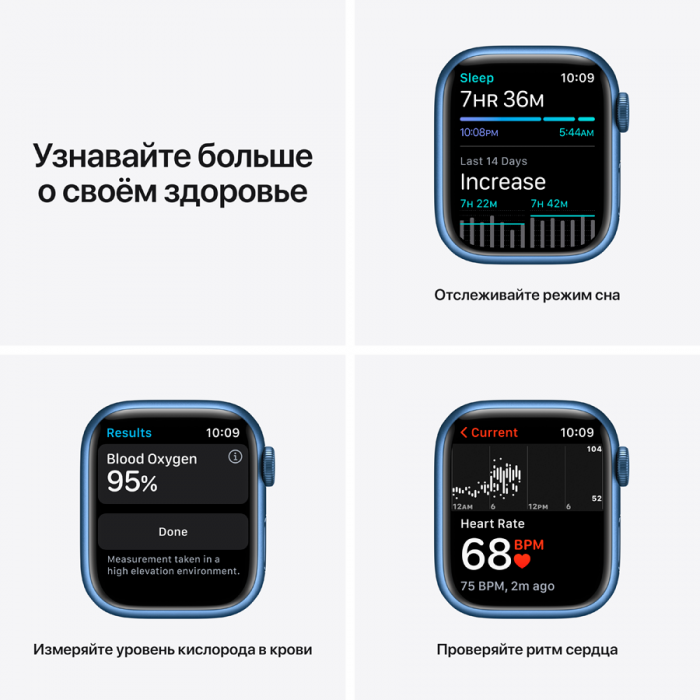 Следите за показателями сна. Вызывайте помощь в сложных ситуациях с помощью функции «Экстренный вызов — SOS». И обретайте внутренний баланс с приложением «Осознанность».