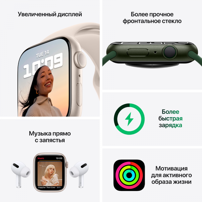 Apple Watch Series 7, 41 мм, сияющая звезда, спортивный ремешок сияющая звезда (MKMY3)