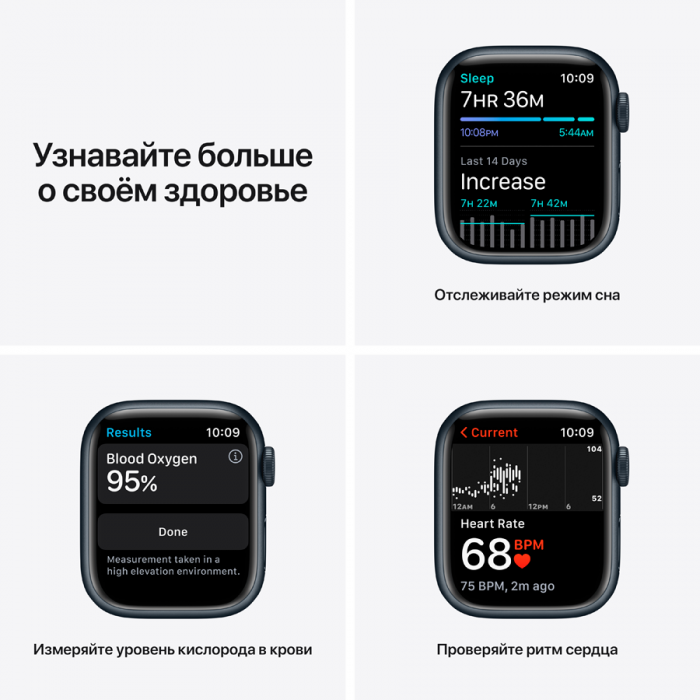 Следите за показателями сна. Вызывайте помощь в сложных ситуациях с помощью функции «Экстренный вызов — SOS». И обретайте внутренний баланс с приложением «Осознанность».