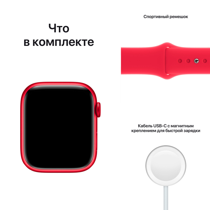 Apple Watch Series 8, 45 мм, корпус из алюминия цвета (PRODUCT)RED, спортивный ремешок цвета (PRODUCT)RED