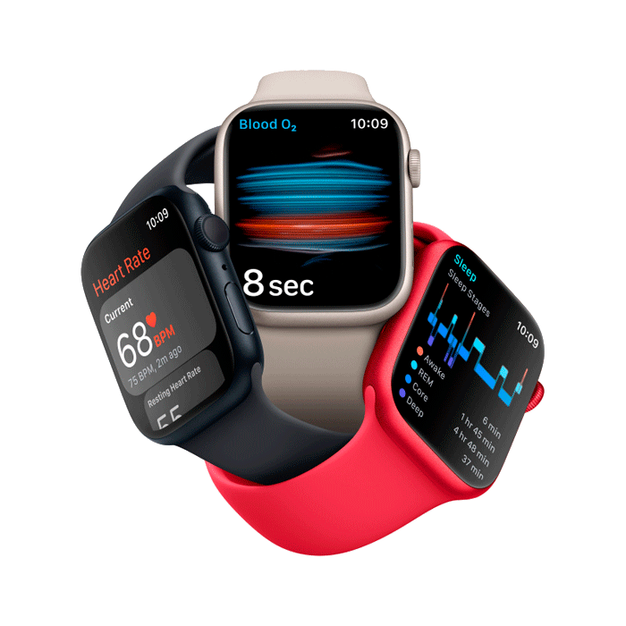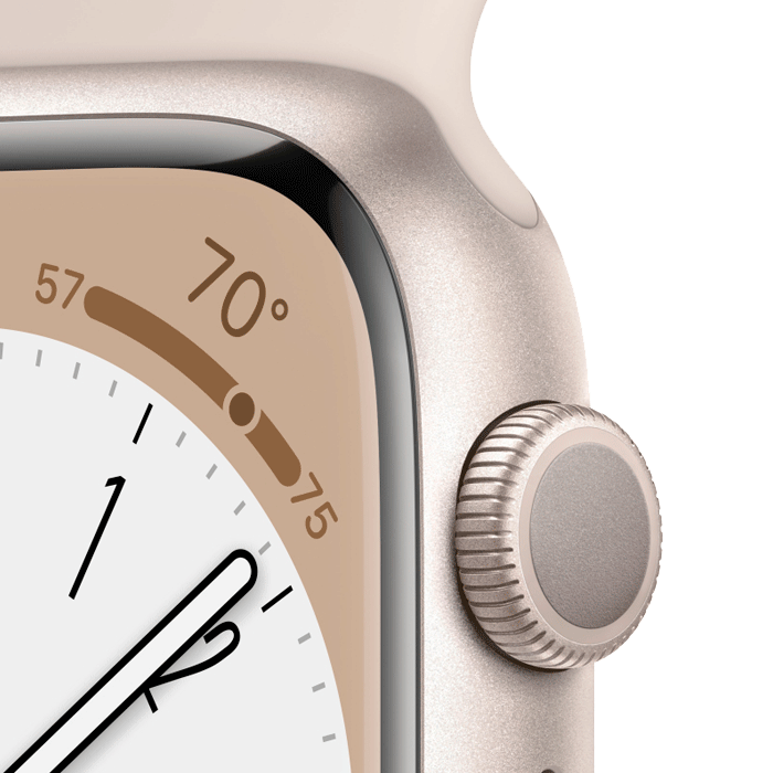 Apple Watch Series 8, 45 мм, корпус из алюминия цвета сияющая звезда, спортивный ремешок цвета сияющая звезда