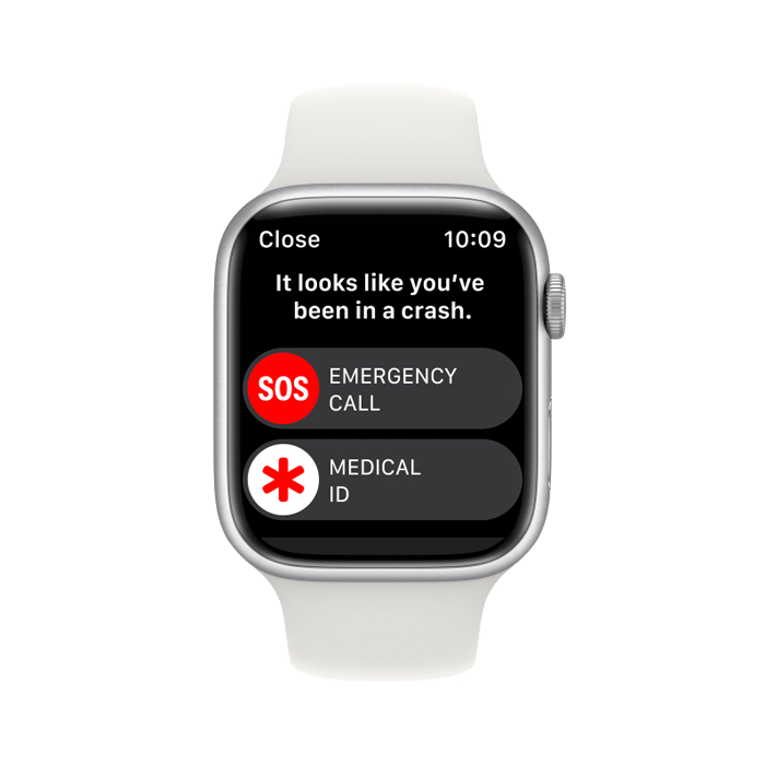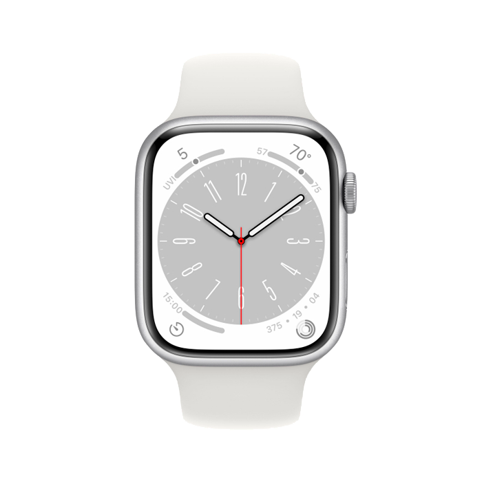 Apple Watch Series 8, 45 мм, корпус из алюминия серебристого цвета, спортивный ремешок белого цвета