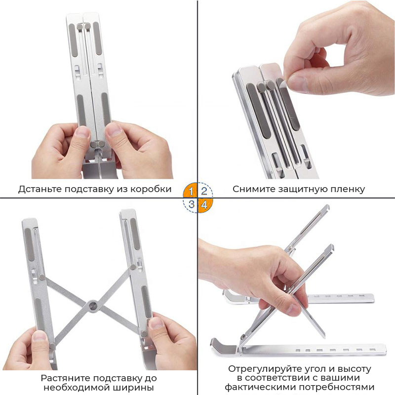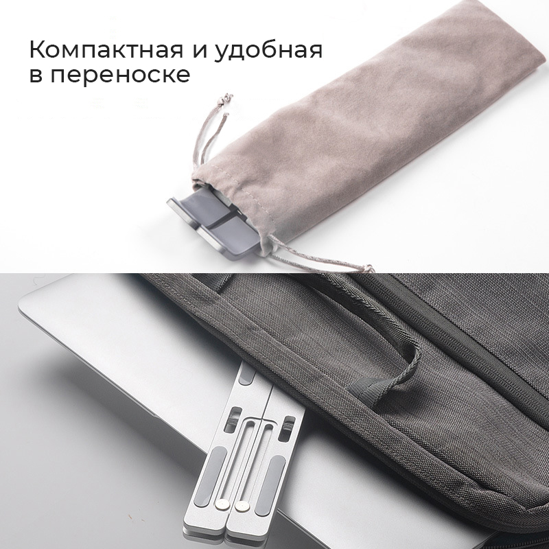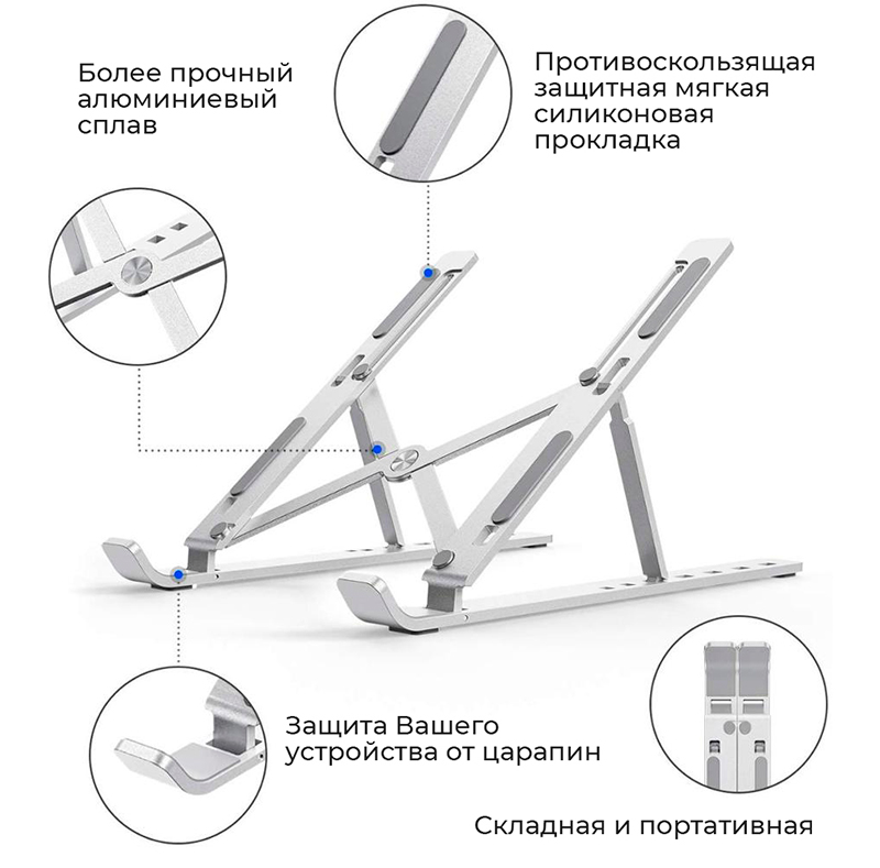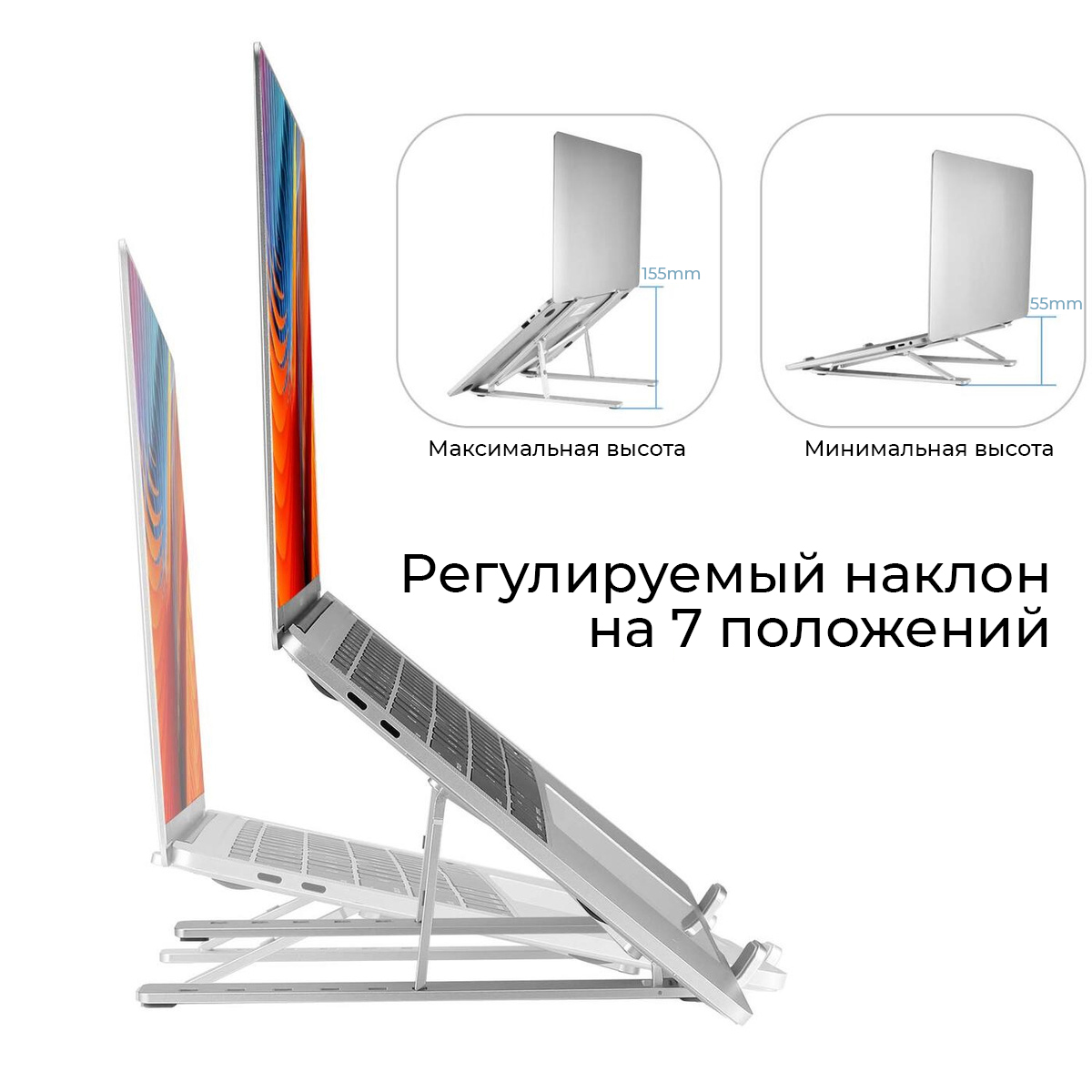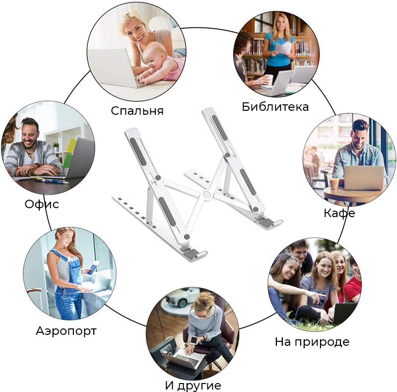 Алюминиевая регулируемая портативная складная подставка для планшета и ноутбука до 15,6 дюймов позволит Вам установить ноутбук или планшет под удобным углом и комфортно работать.