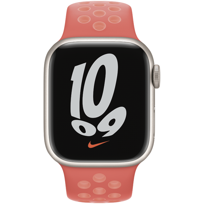 Спортивный ремешок Nike производится из специального фторэластомера, который отличается повышенной прочностью, надёжностью и удивительной мягкостью. Отлитые под давлением отверстия обеспечивают доступ воздуха к коже. Гладкий и плотный материал изящно облегает запястье и комфортно сидит на руке. А для удобной фиксации мы создали особую застёжку pin‑and‑tuck.