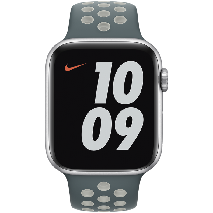 Спортивный ремешок Nike для Apple Watch 44 мм, серо-зелёный/серебристый (MJ6K3)