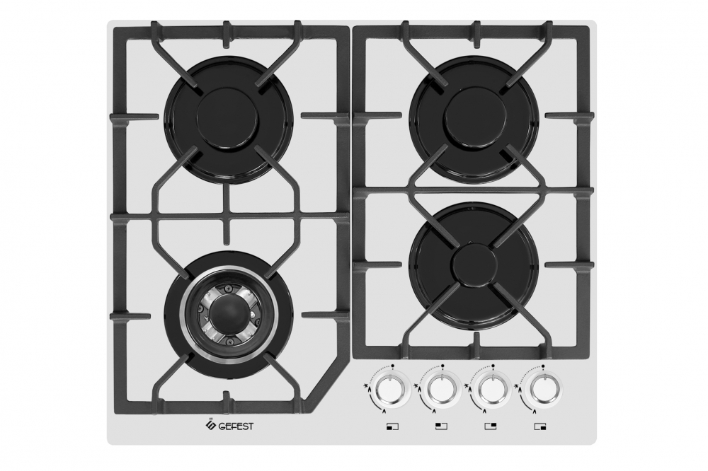 Встраиваемая газовая варочная панель Gefest (Гефест) серии ПВГ 2232-01 на 4 конфорки, с автоматическим встроенным электророзжигом и газ-контролем горелок. Электророзжиг горелок встроен в ручки управления, все горелки панели имеют фиксированное положение "малое пламя". Чугунные решетки стола съемные, это значительно упрощает уход за варочной поверхностью. Каждая из четырёх зон варочной панели оснащена функцией газ-контроль, что обеспечивает безопасную работу газовой техники. Двухзонная горелка (WOK). Идеально гладкая и ультратонкая стеклянная поверхность, минималистичный дизайн. В этой серии поверхность варочной панели из закаленного стекла представлена, как в однотонных вариантах (арт. ПВГ 2232-01 черная, ПВГ 2232-01 К12 белая, ПВГ 2232-01 К81 кремовая), так и в расцветках под натуральный камень (ПВГ 2232-01 К48), мрамор (ПВГ 2232-01 К52), серое дерево (ПВГ 2232-01 К35), серый цемент для интерьеров в стиле лофт (ПВГ 2232-01 К56).